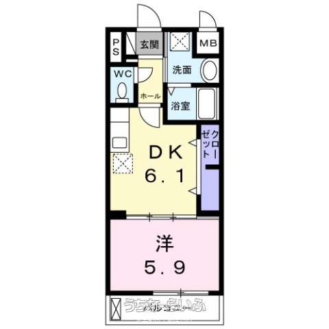 | 間取り | 1DK ( 洋5.9 DK6.1 ※オートロック・ネット無料・宅配ボックス・防犯カメラ・追焚機能/浴室乾燥機・システムキッチン・シャワー付洗面台・温水洗浄便座・エアコン・照明付き☆彡) | ||