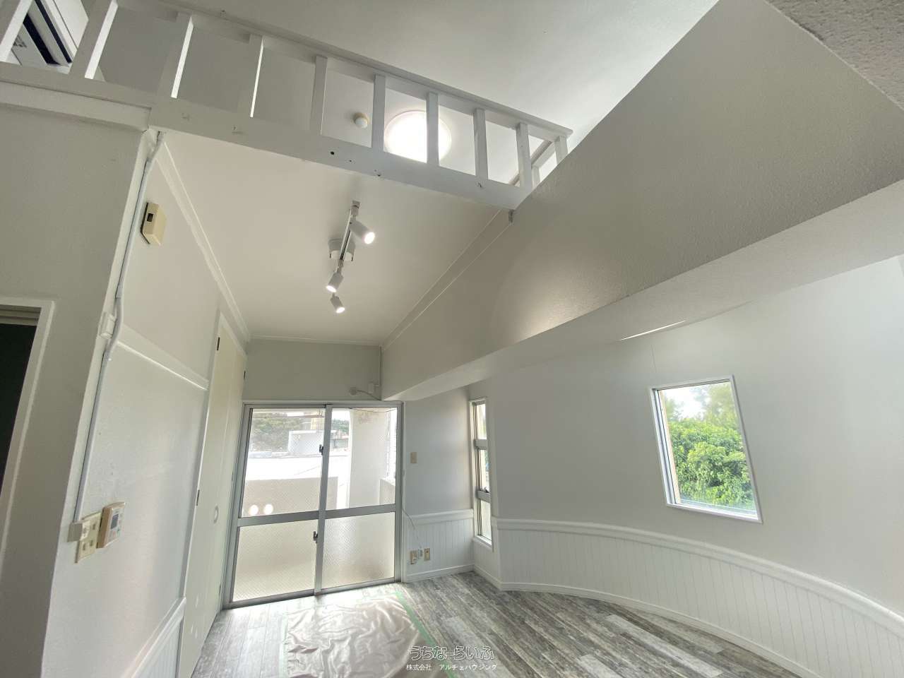 【恩納村谷茶 ロフト付ワンルーム】【ペット可】※駐車場利用必須(犬・猫)海が見える明るいお部屋!リフォーム済み・オシャレなリゾートライフ! 広いロフト・最上階・角部屋!! 屋根付き駐車場! ガス乾燥機付き!