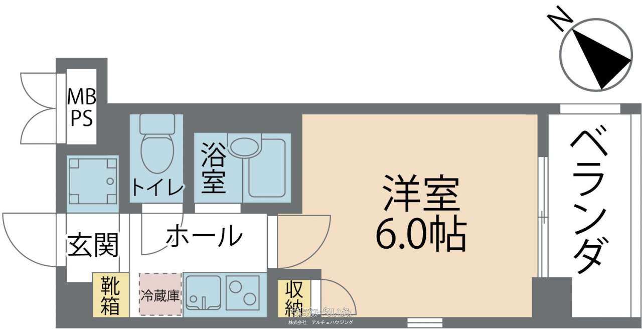 | 間取り | 1K ( 洋6 K2) | ||
