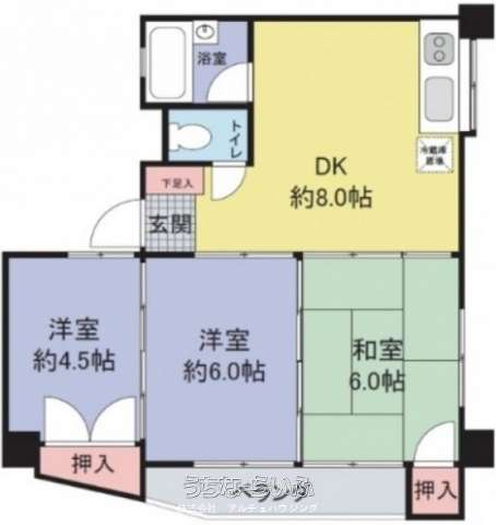 | 間取り | 3DK ( 洋6 洋4.5 和6 DK8) | ||