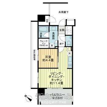 | 間取り | 1LDK ( 洋4.4 LDK11.4 ※角住戸■3方角住戸■ディンプルキー■24時間換気システム) | ||