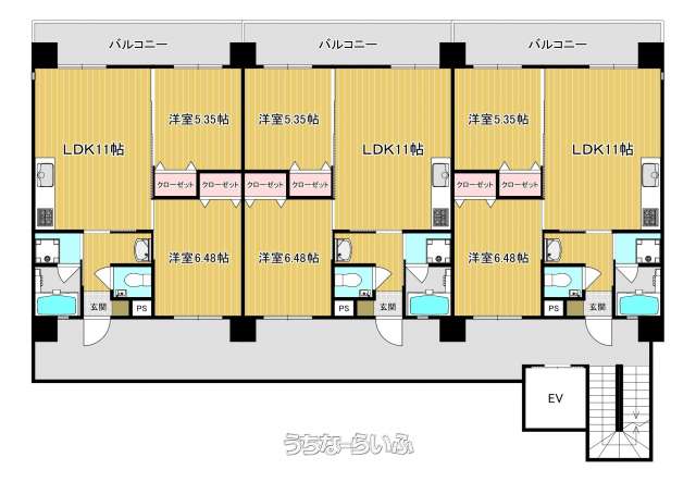 | 間取り | 2LDK ( 洋6.4 洋5.3 LDK11) | ||