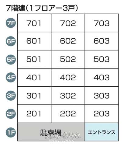 | 部屋番号 | - | 所在階/階数 | 7階 (7階建) |