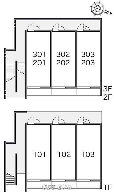 | 部屋番号 | 303号 | 所在階/階数 | 3階 (3階建) |
