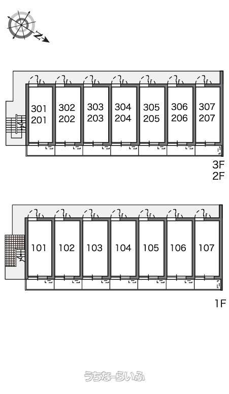 | 部屋番号 | 207号 | 所在階/階数 | 2階 (3階建) |