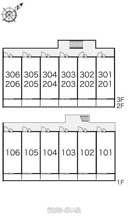 | 部屋番号 | 201号 | 所在階/階数 | 2階 (3階建) |