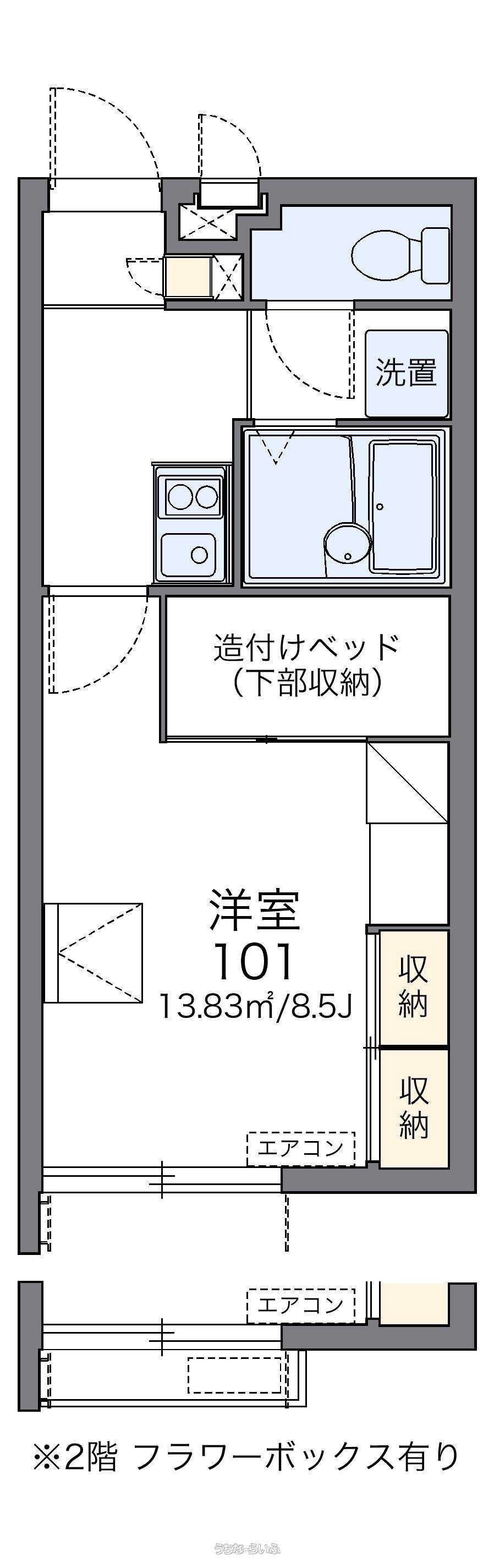 | 間取り | 1K ( 洋8.5 K2) | ||