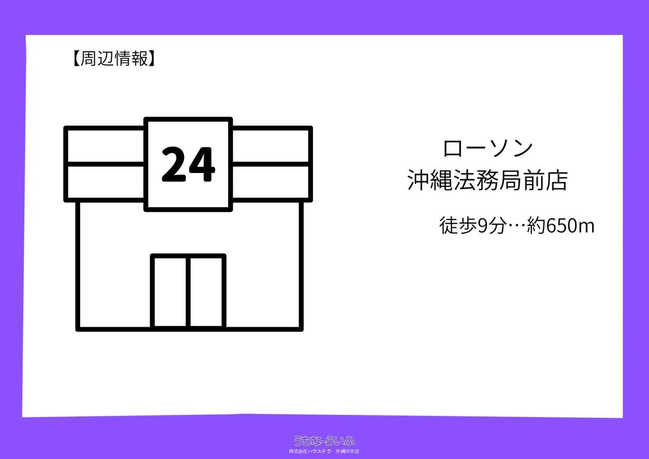 | 備考 | <初期費用概算 詳細>※2カ月分 ●家賃等(合計:131,408円) ・家賃:98,000円 ・共益費:13,000円 ・駐車場使用料:11,000円 ・環境維持費:1,100円 ・インターネット利用料:7,260円 ・事務手数料:1,048円 ※月の途中でご契約の場合、日割りが加算されます。 ●入居時発生費用等(合計:172,480円) ・礼金:49,000円 ・敷金:0円 ・退去時清掃費:41,800円 ・契約時保証委託料:65,180円 ・鍵交換費:16,500円 <近隣情報> ■サンエーV21食品館知花店(徒歩13分…約1000m) ■マックスバリュ知花店(徒歩13分…約900m) ■フレッシュプラザユニオン赤道店(徒歩16分…約1100m) ■ローソン沖縄法務局前店(徒歩9分…約650m) <学校区> ■美里小学校(徒歩24分…約1700m) ■美里中学校(徒歩7分…約550m) |