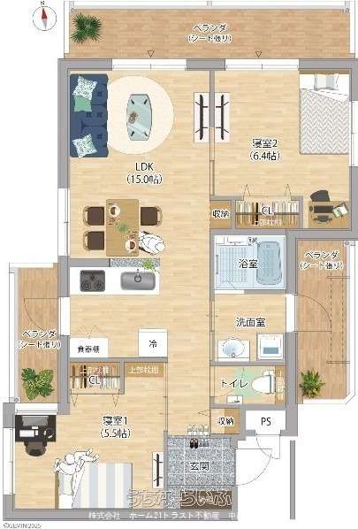 | 間取り | 2LDK ( 洋5.5 洋6.4 LDK15) | ||