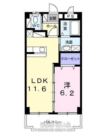 | 間取り | 1LDK ( 洋6.2 LDK11.6) | ||