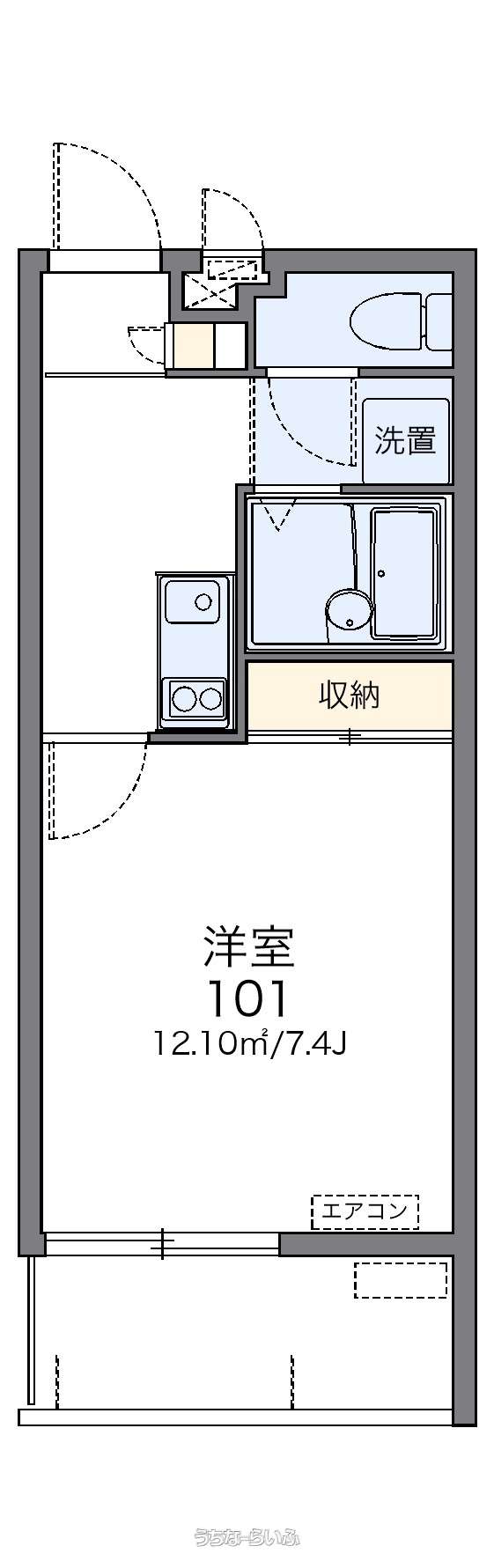 | 間取り | 1K ( 洋8 K2) | ||
