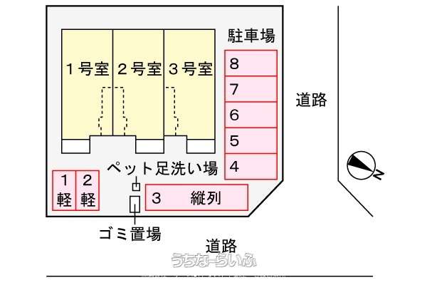 | 部屋番号 | 101号 | 所在階/階数 | 1階 (2階建) |