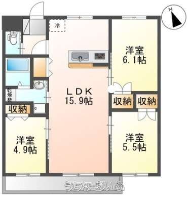 | 間取り | 3LDK ( 洋4.9 洋5.5 洋6.1 LDK15.9) | ||