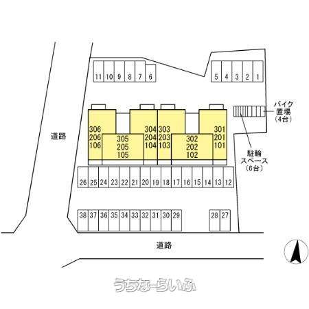 | 部屋番号 | 206号 | 所在階/階数 | 2階 (3階建) |