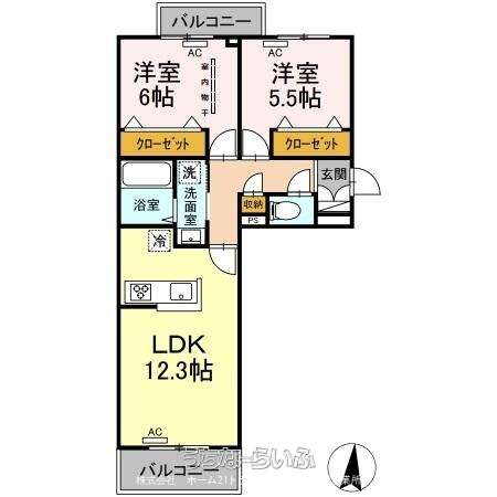 | 間取り | 2LDK ( 洋5.5 洋6 LDK12.3) | ||