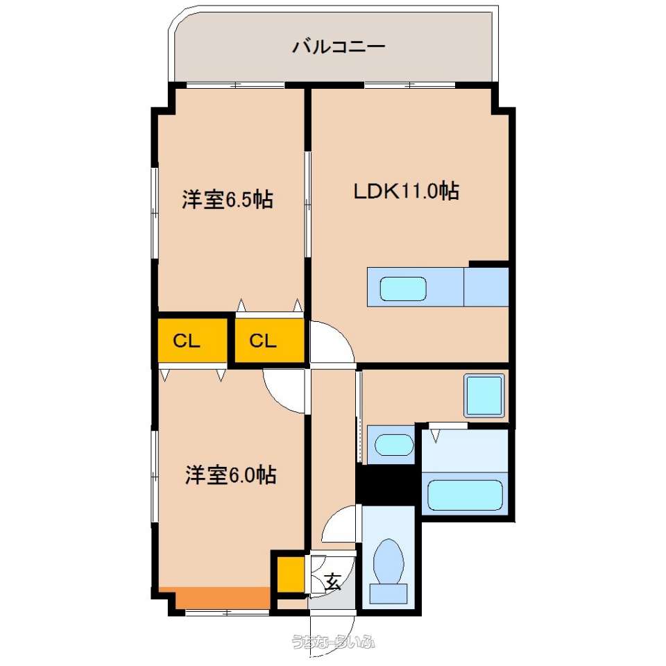 | 間取り | 2LDK ( 洋6.5 洋6 LDK11) | ||