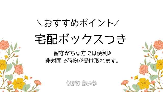 | 建物設備 | 宅配ボックス 、 都市ガス |