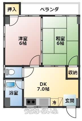| 間取り | 2DK ( 洋6 和6 DK7 ※西向き♪) | ||