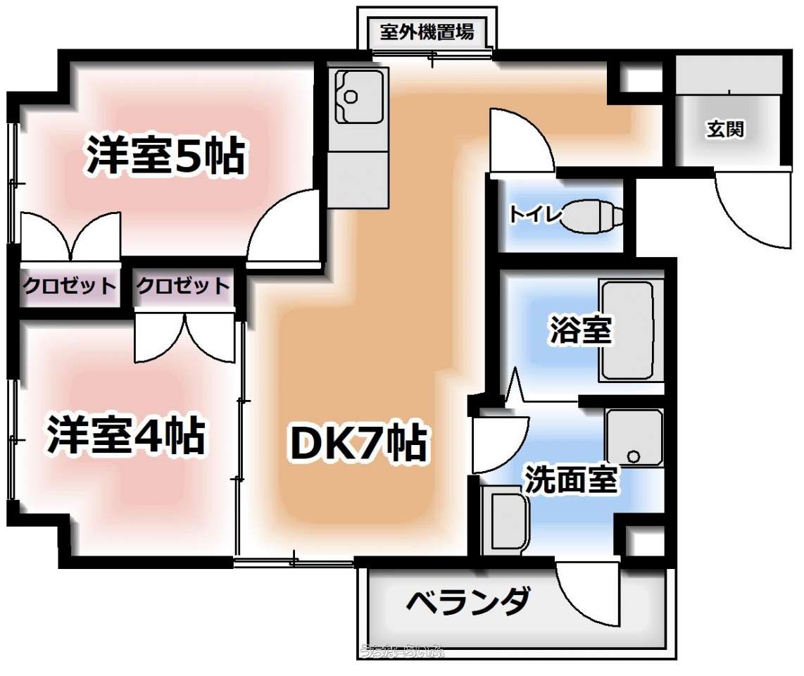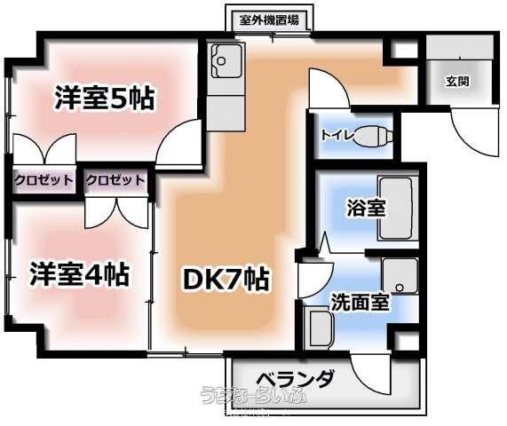 | 間取り | 2DK ( 洋5 洋4 DK7) | ||