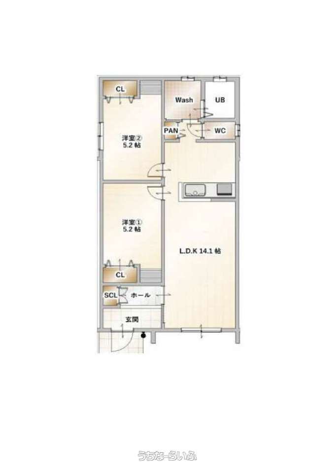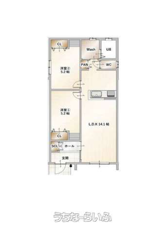 間取り | 2LDK ( 洋5.2 洋5.2 LDK14.1) | ||