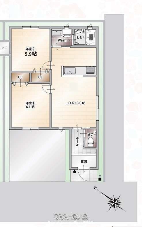 間取り | 2LDK ( 洋6.1 洋5.9 LDK13) | ||