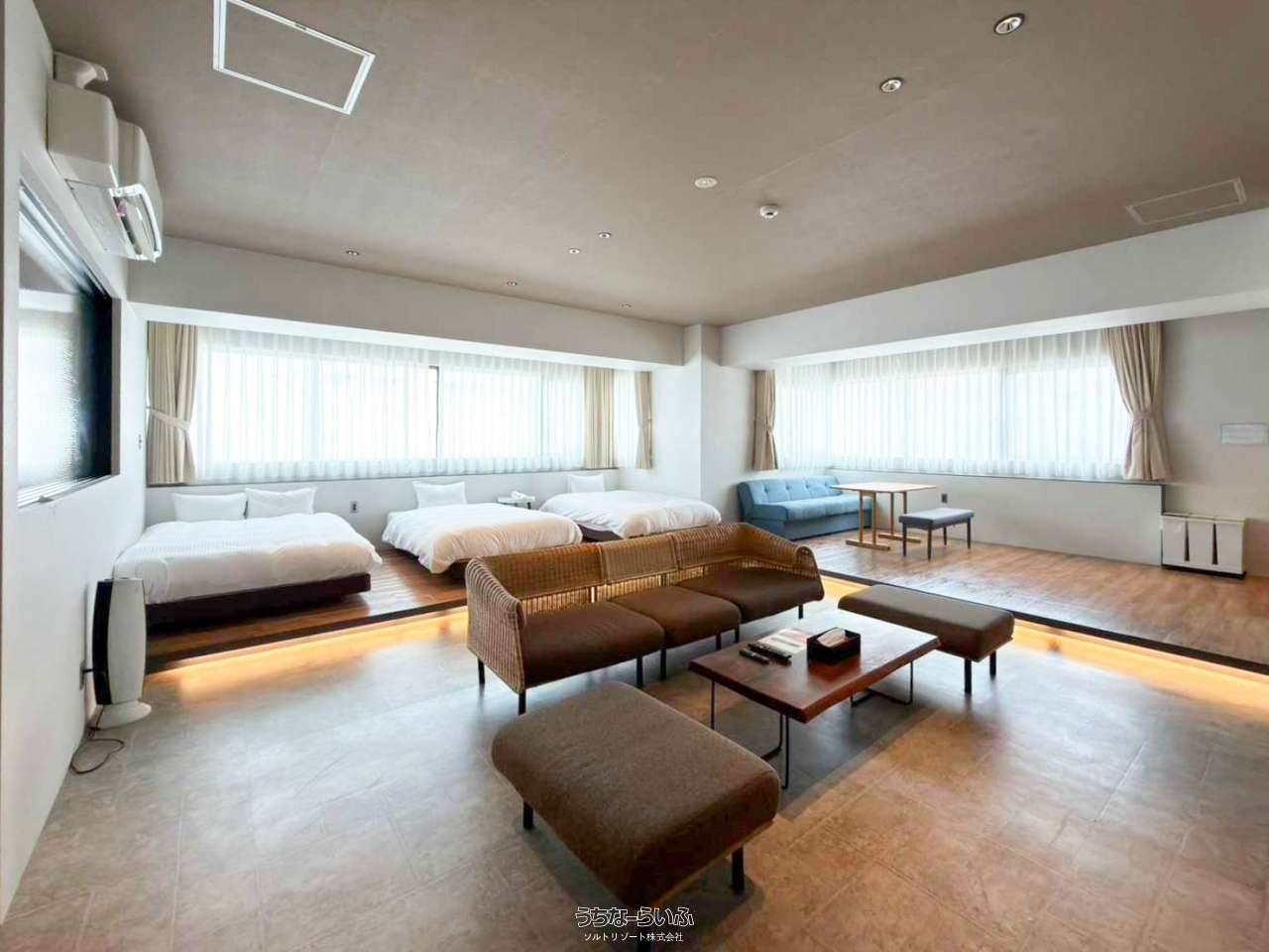 | 備考 | \デラックスツイン・デラックスダブルルーム/ フロアごとに1部屋だけのつくりなので、ご家族や仲間だけで気兼ねなく過ごせます。 -------------------- ●交通 ・泊ふ頭旅客ターミナルビル「とまりん」 290m/徒歩約4分 ・モノレール美栄橋駅 650m/徒歩約9分 ・那覇空港 4.4km/車で約11分 ●人気スポット ・波の上ビーチ 1.2km/車で約3分 ・国際通り 1.3km/車で約4分 ・壺屋焼物博物館 1.5km/車で約4分 ・沖縄県立博物館・美術館 1.8km/車で約5分 ・首里城 4.4km/車で約11分 ●レストラン ・花笠食堂 350m/徒歩約5分 ・島牛 400m/徒歩約5分 ・やっぱりステーキ 500m/徒歩約7分 -------------------- 【室内設置】 ダブルベット×1 セミダブルベット×2 バストイレ / 冷暖房 / 浴室乾燥機 / 洗濯機 / テレビ / 冷蔵庫 / 無料Wi-Fi / キッチン / 電子レンジ / ウォシュレット 【アメニティサービス】 ハンドタオル / バスタオル / シャンプー&リンス / ボディソープ / ドライヤー / 歯磨きセット / 食器洗剤 / 洗濯洗剤 / 柔軟剤 等 ※ご要望に応じて、清掃を実施させていただきます。 【専用駐車場】 なし。近隣にコインパーキングがございます。 -------------------- ゆくれば前島ホテルのホームページはこちら https://hotelmaejima.com/  |