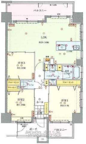 | 間取り | 3LDK ( 洋5 洋5.2 洋8 LDK20.3) | ||