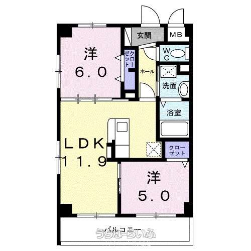 | 間取り | 2LDK ( 洋6 洋5 LDK11.9) | ||