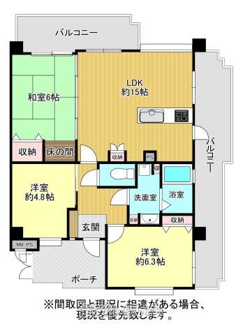 | 間取り | 3LDK ( 洋6.3 洋4.8 和6 LDK15) | ||