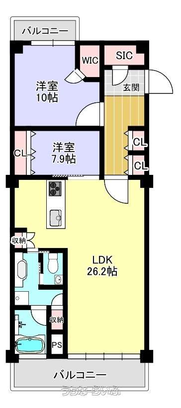 | 間取り | 2LDK ( 洋7.9 洋10 LDK26.2) | ||