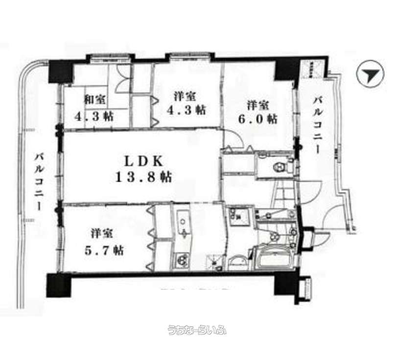 | 間取り | 4LDK ( 洋6 洋5.7 洋4.3 和4.3 LDK13.8) | ||