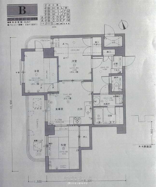 | 間取り | 3LDK ( 洋5.5 洋6 和6 LDK8) | ||