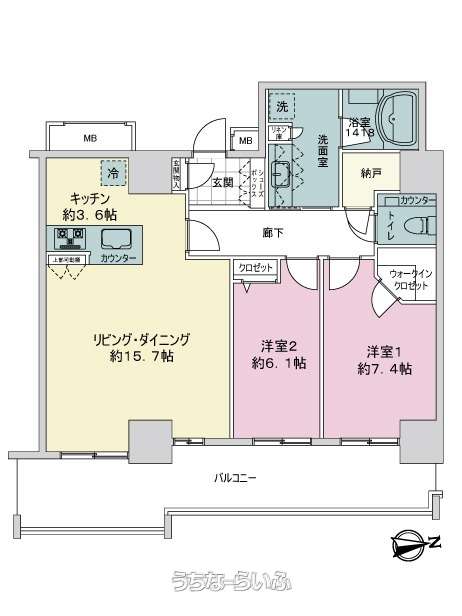 | 間取り | 2LDK ( 洋7.4 洋6.1 LDK19.3) | ||