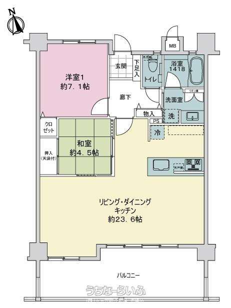 | 間取り | 2LDK ( 洋7.1 洋4.5 LDK23) | ||
