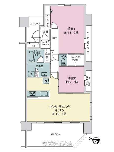 | 間取り | 2LDK ( 洋11.9 洋5.7 LDK19.4) | ||