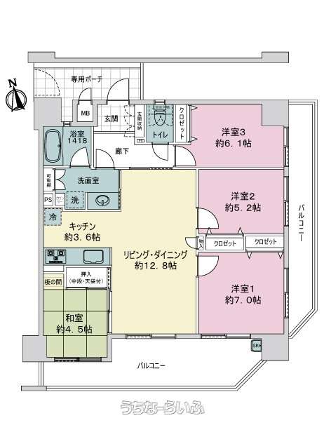 | 間取り | 4LDK ( 洋7 洋5.2 洋6.1 和4.5 LDK16.4) | ||