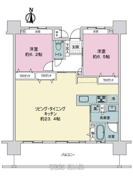 | 間取り | 2LDK ( 洋6.5 洋6.2 LDK23.4) | ||
