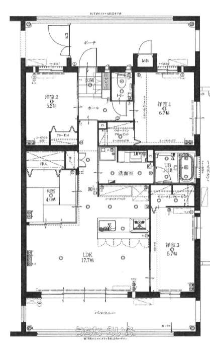 | 間取り | 4LDK ( 洋5.2 洋6.7 洋5.7 和4 LDK17.7 ※半和室) | ||