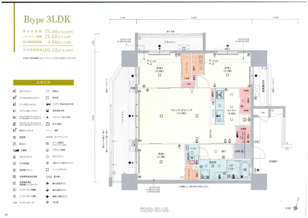 | 間取り | 3LDK ( 洋5.7 洋5.7 洋5 LDK13.5) | ||