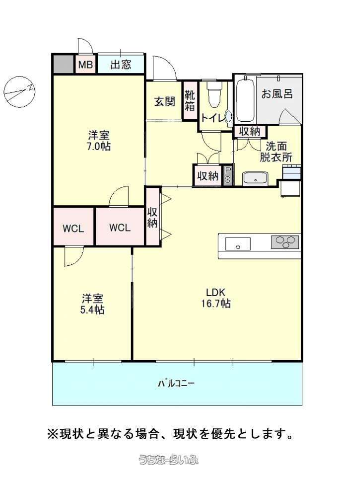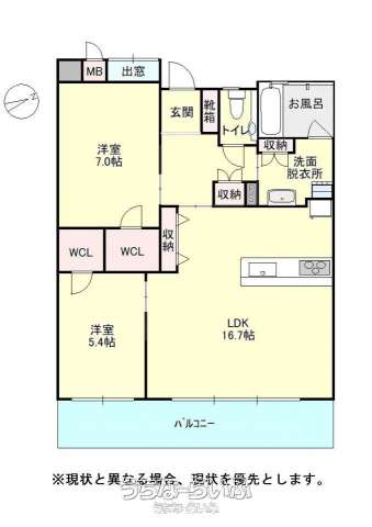 | 間取り | 2LDK ( 洋7 洋5.4 LDK16.7) | ||