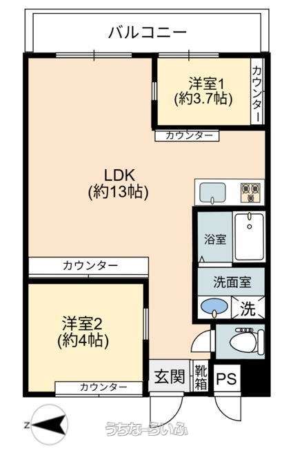 | 間取り | 2LDK ( 洋3.7 洋4 LDK13) | ||