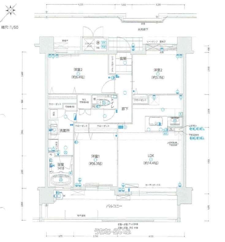 | 間取り | 3LDK ( 洋6.4 洋6.3 洋3.1 LDK14.4) | ||