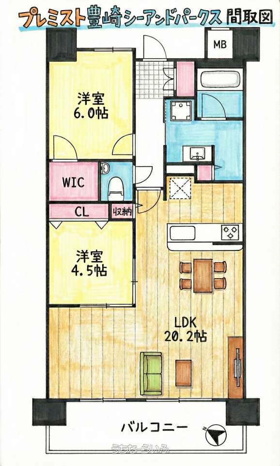 | 間取り | 2LDK ( 洋6 洋4.5 LDK20.2 ※ウォークインクローゼット) | ||