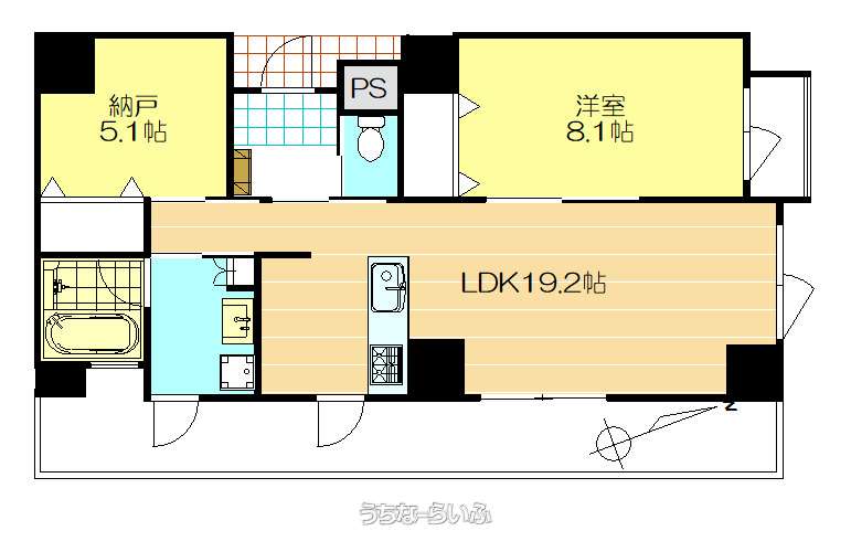 | 間取り | 1SLDK ( 洋8.1 SLDK19.2 ※サービスルーム5.1帖) | ||