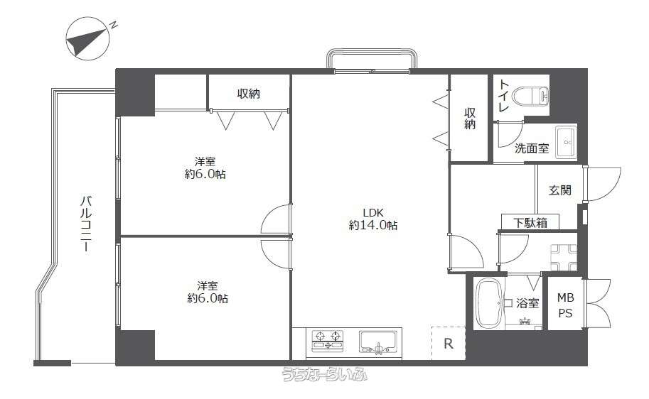 | 間取り | 2LDK ( 洋6 洋6 LDK14) | ||