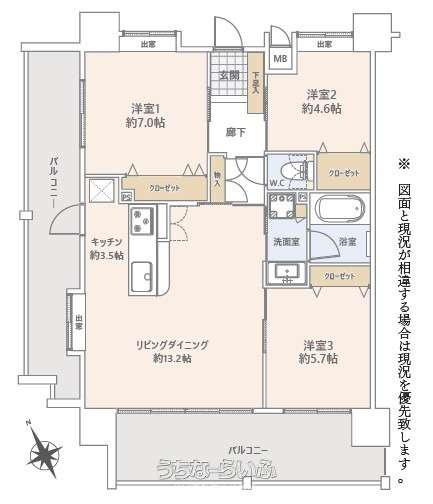 | 間取り | 3LDK ( 洋7 洋5.7 洋4.6 LDK16.7) | ||