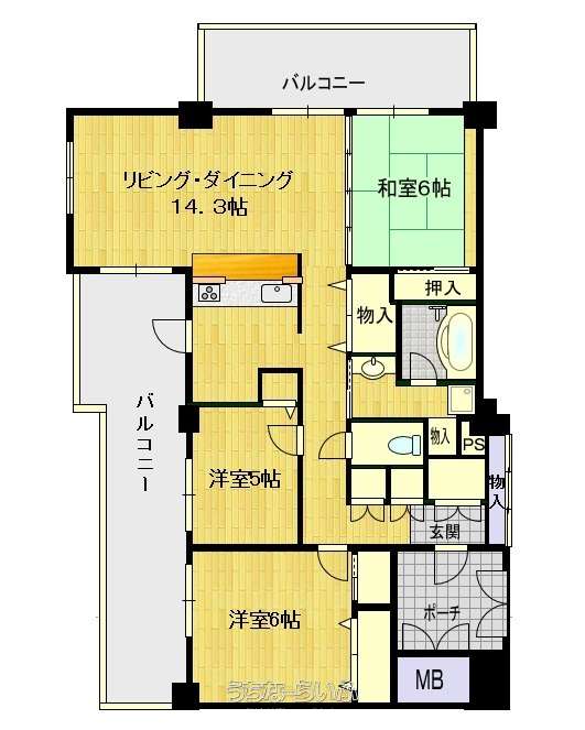 | 間取り | 3LDK ( 洋6 洋5 和6 LDK14.3) | ||
