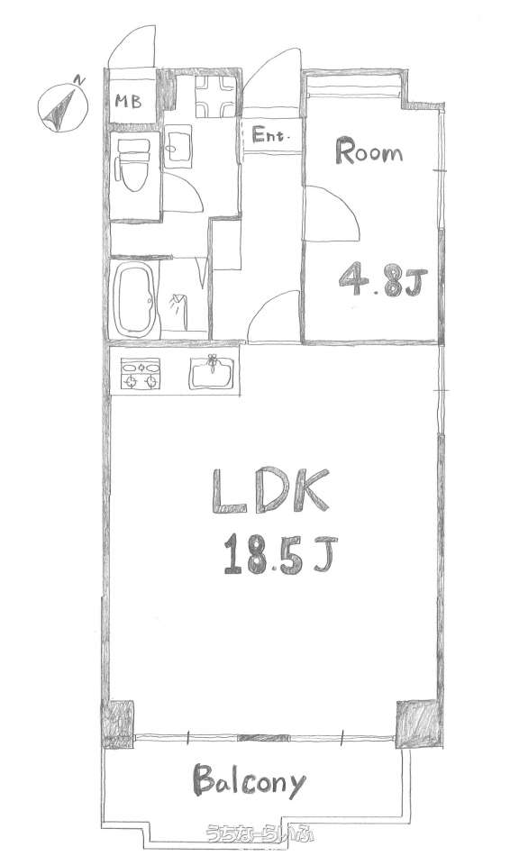 | 間取り | 1LDK ( 洋4.8 LDK18.5) | ||