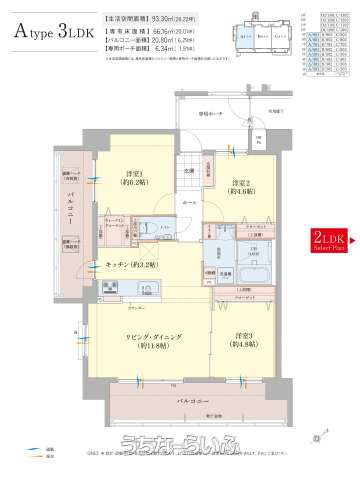 | 間取り | 3LDK ( 洋6.2 洋4.8 洋4.6 LDK11.8) | ||