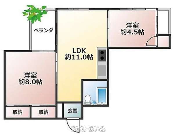 | 間取り | 2LDK ( 洋6 洋8 LDK11) | ||